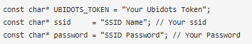 然后,輸入令牌和Wi-Fi憑據(jù),在NodeMCU和Ubidots之間建立連接。
