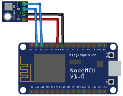 Ubidots NodeMCU的電路圖非常簡(jiǎn)單,只有BMP180傳感器與NodeMCU相連。