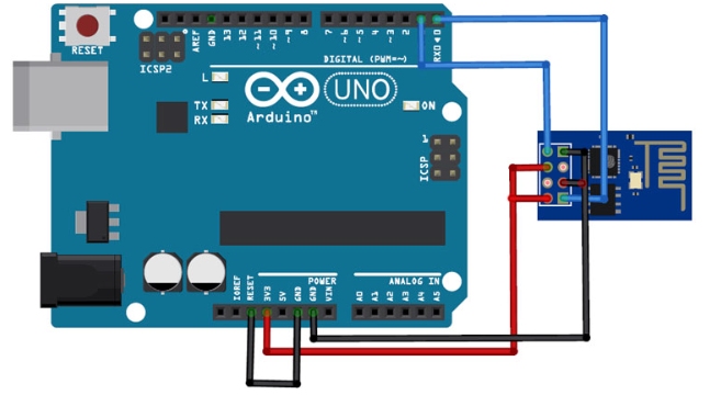而不是使用FTDI板,在這里我使用Arduino Uno來編程ESP8266-01。使用Arduino Uno對ESP8266-01進(jìn)行編程,根據(jù)給定的圖制作電路。