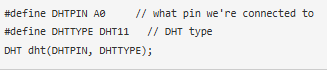 然后定義DHT類型和連接DHT傳感器的引腳。