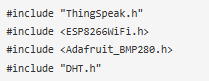 通過(guò)在代碼中包含所有所需的庫(kù)文件來(lái)啟動(dòng)代碼,例如ESP8266WiFi.h用于ESP8266板,Wire.h用于I2C通信等。