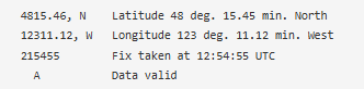 GPGLL -地理定位,緯度和經(jīng)度。例如:$GPGLL,4815.45,N,12311.12,W,215455,A
