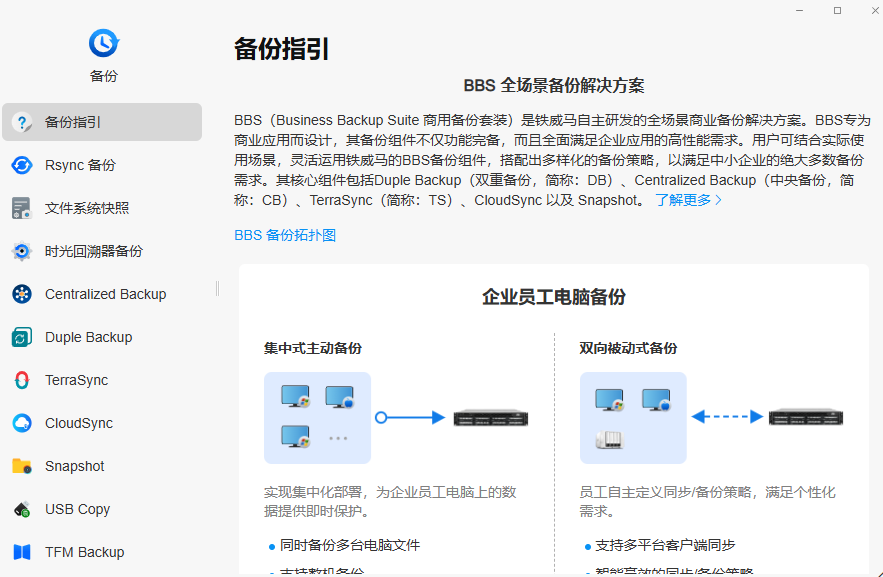 數(shù)據(jù)安全是企業(yè)選擇NAS產(chǎn)品時(shí)考慮的關(guān)鍵因素之一。鐵威馬F6-424 MAX內(nèi)置了多重安全防護(hù)機(jī)制,包括但不限于用戶權(quán)限管理、數(shù)據(jù)加密傳輸以及自動(dòng)備份功能等,有效防止數(shù)據(jù)泄露和丟失的風(fēng)險(xiǎn)。同時(shí)鐵威馬還提供了BBS全場(chǎng)景備份解決方案,多種安全備份工具如中央備份、雙重備份等,能夠在遭遇意外情況時(shí)迅速恢復(fù)業(yè)務(wù),確保企業(yè)運(yùn)營(yíng)的連續(xù)性。