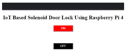 通過網(wǎng)頁控制電磁門鎖的完整HTML代碼如下:在這個(gè)HTML代碼中,ON和OFF按鈕有兩個(gè)不同的整數(shù)。整數(shù)1被分配給ON按鈕,2被分配給OFF按鈕。Flask web框架用于在網(wǎng)頁上按下按鈕時(shí)向樹莓派發(fā)送數(shù)據(jù)。