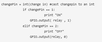 檢查changePin變量,如果它等于1,則將繼電器引腳更改為高,否則將其更改為低。