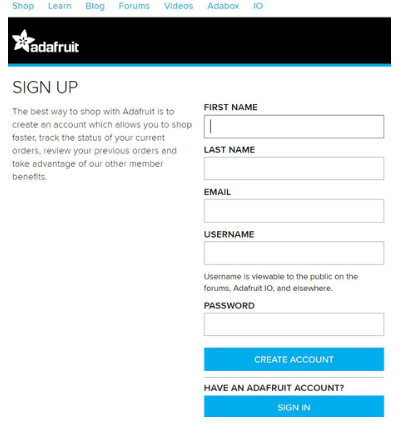 第一步:你需要做的第一件事就是注冊Adafruit IO。點擊屏幕右上角的“免費入門”。