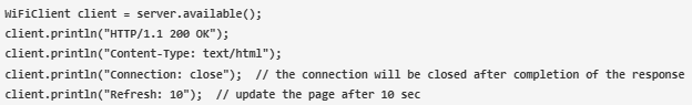 接下來,使用HTML設(shè)計web頁面,并使用client.println()函數(shù)發(fā)送每一行。