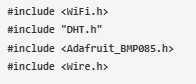 我們還需要為這個基于物聯(lián)網(wǎng)的氣象站提供四個庫- WiFi, DHT(用于DHT傳感器),Adafruit_BMP085(用于BMP180)和Wire(用于I2C)。