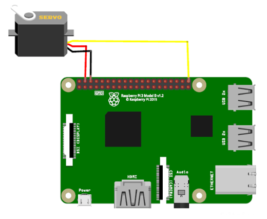 這個項目的電路圖非常簡單;你需要將伺服電機連接到樹莓派上。將伺服電機的紅線接樹莓派的5V,黑線接地,黃線接GPIO 21,即樹莓派的40引腳。