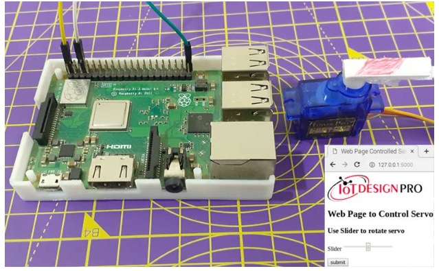 該網(wǎng)頁將使用Flask Web框架創(chuàng)建樹莓派伺服電機控制。網(wǎng)頁將有一個滑塊和一個提交按鈕,它將發(fā)送滑塊值到樹莓派按下提交按鈕。在基于物聯(lián)網(wǎng)的應用中,web服務器用于使用web瀏覽器控制或監(jiān)控任何傳感器值,我們以前使用Arduino, ESP8266, NodeMCU, ESP32,樹莓派等創(chuàng)建了許多web服務器。