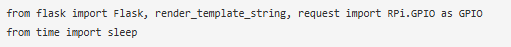 通過導入所需的庫文件來啟動代碼。導入GPIO、Flask和sleep庫。GPIO功能使我們能夠?qū)I的GPIO引腳進行編程。Sleep函數(shù)用于提供延遲,F(xiàn)lask用于創(chuàng)建Web應用程序。