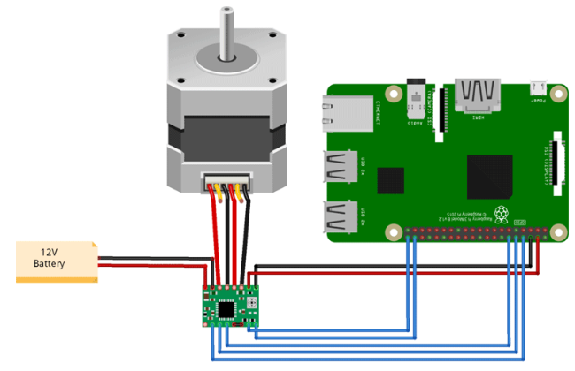 用樹莓派控制Nema 17步進電機的電路圖如下: