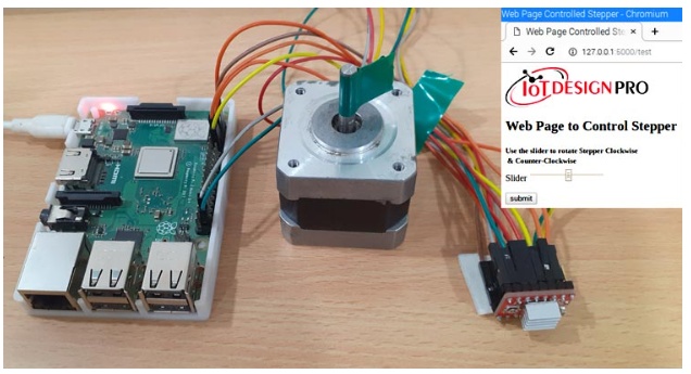 該網(wǎng)頁將使用用于樹莓派步進電機控制的Flask Web框架創(chuàng)建。網(wǎng)頁將有一個滑塊和一個提交按鈕,它將發(fā)送滑塊值到樹莓派按下提交按鈕。在基于物聯(lián)網(wǎng)的應用中,web服務器用于使用web瀏覽器控制或監(jiān)控任何傳感器值,我們以前使用Arduino, ESP8266, NodeMCU, ESP32,樹莓派等創(chuàng)建了許多web服務器。