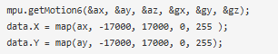 然后定義MPU6050陀螺儀和加速度計(jì)數(shù)據(jù)的變量。這里只使用加速度計(jì)數(shù)據(jù)。