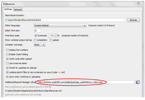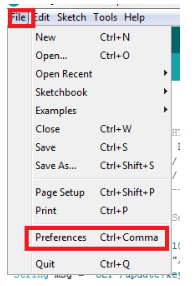 要用Arduino IDE編程N(yùn)odeMCU,請(qǐng)進(jìn)入File - > preferences - >Settings。