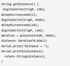 5. 現在,創(chuàng)建一個函數來計算到墻的距離。我們可以用聲速乘以接收到聲音的時間來計算距離。
