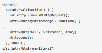 4. 然后在HTML內容中編寫一個腳本,該腳本可以在預定義的時間之后運行,以更新汽車與墻壁的距離。Setinterval函數負責在不刷新頁面的情況下定期更新距離。這里我們每隔5秒更新一次距離。