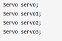 3. 在這個(gè)項(xiàng)目中,我們使用了四個(gè)伺服電機(jī)和機(jī)械臂,所以我們創(chuàng)建了四個(gè)帶有伺服類的物體。
