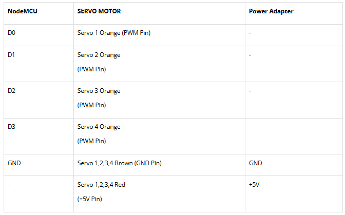 這個(gè)項(xiàng)目的工作非常簡單,我們只是通過互聯(lián)網(wǎng)從一個(gè)應(yīng)用程序控制機(jī)器人手臂的四個(gè)伺服電機(jī)。NodeMCU有一個(gè)內(nèi)置的ESP8266 Wi-Fi模塊,因此我們可以將NodeMCU連接到互聯(lián)網(wǎng)。接下來,在移動(dòng)設(shè)備中使用Blynk應(yīng)用程序,我們創(chuàng)建了一個(gè)應(yīng)用程序,通過互聯(lián)網(wǎng)發(fā)送值,以控制與NodeMCU連接的四伺服電機(jī)的PWM值。