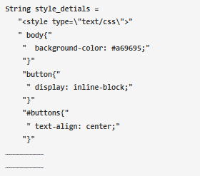 我們還需要為網(wǎng)頁(yè)界面設(shè)計(jì)一個(gè)HTML頁(yè)面。這里所有的HTML代碼都是在一個(gè)名為“style_details”的字符串中分配的。這部分代碼用于設(shè)置頁(yè)面的背景顏色、按鈕樣式、文本樣式等。