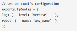 可以通過在config.js文件中編輯TJBot的配置來更改bot的名稱,如下所示。