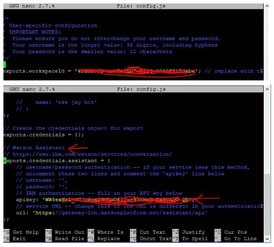 如下所示,輸入所有三個(gè)服務(wù)的憑據(jù),并使用ctrl+x保存并按Enter。