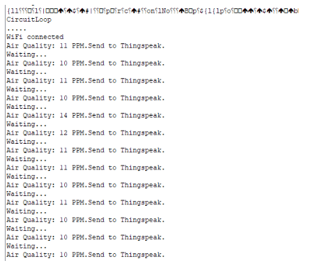 在void循環(huán)內(nèi)部,將測(cè)量函數(shù)空氣質(zhì)量,并使用. getppm()函數(shù)將值更改為PPM。之后,這些值將被發(fā)布到幾個(gè)ThingSpeak通道。