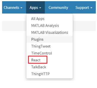 回到ThingSpeak頻道,然后點(diǎn)擊Apps > React > New React。