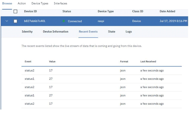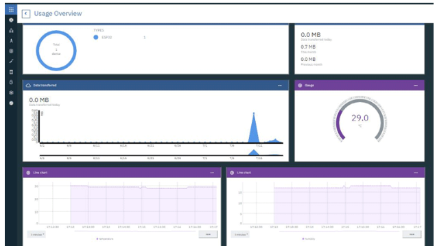 1. 現(xiàn)在,是時候檢查IBM Watson平臺上上傳的數(shù)據(jù)了。一旦您的模塊與Wi-Fi連接,您將看到IBM Watson平臺上的連接狀態(tài),如下所示。