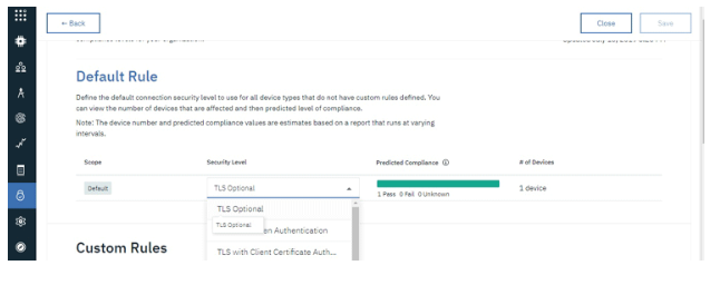 19. 在默認規(guī)則下,選擇安全級別為TLS可選,然后單擊保存。