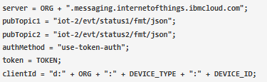 然后定義在Watson平臺上添加設備時復制的所有憑據(jù),如下所示。