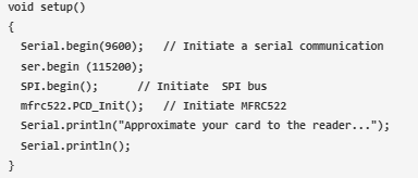 在setup函數(shù)中,我們將串行通信初始化為9600波特率,軟件串行初始化為115200波特率。我們也開通了與MFRC522的溝通。