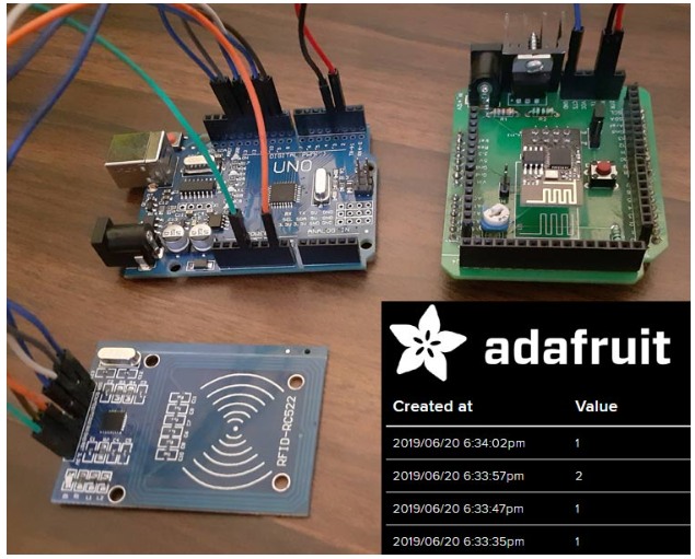 本課題是利用射頻識(shí)別(RFID)技術(shù)簡(jiǎn)化考勤系統(tǒng)。在這個(gè)項(xiàng)目中,我們使用Arduino Uno, RC522 RFID掃描儀和ESP8266 Wi-Fi模塊。Arduino和RFID掃描儀掃描RFID卡,然后借助ESP8266 Wi-Fi模塊將數(shù)據(jù)記錄到Adafruit IO云平臺(tái)。這些信息可以顯示在Adafruit IO儀表板上,并可以由所需的當(dāng)局訪問,以便隨時(shí)隨地通過互聯(lián)網(wǎng)查看和分析考勤情況。