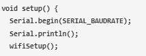在void setup()函數(shù)中,將波特率傳遞給serial。Begin函數(shù)并調(diào)用wifissetup函數(shù)。