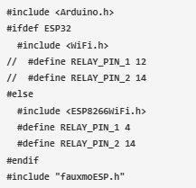 首先,包括ESP板和fauxmoESP的重要頭文件。ESP8266和ESP32有不同的頭文件,但在這個(gè)示例代碼中包括兩個(gè)庫,因此此代碼將適用于兩個(gè)板。另外,定義繼電器的引腳編號。