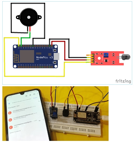 火災(zāi)報(bào)警系統(tǒng)現(xiàn)在非常普遍,通常安裝在銀行,商店,辦公室,家庭等。他們發(fā)現(xiàn)了火災(zāi),并發(fā)出了響亮的警報(bào)通知大家。但是如果沒有人聽到警報(bào)聲,比如在晚上或者沒有人在家的時(shí)候呢?因此,為了向當(dāng)局通報(bào)任何火災(zāi)事件,我們正在建立一個(gè)基于物聯(lián)網(wǎng)的火災(zāi)報(bào)警系統(tǒng),該系統(tǒng)不僅可以觸發(fā)警報(bào),還可以向有關(guān)人員發(fā)送電子郵件警報(bào)。這種方法還可以在發(fā)生火災(zāi)時(shí)自動(dòng)通知消防部門。在這里,我們將使用紅外火焰傳感器探測火災(zāi),并使用ESP8266 NodeMCU觸發(fā)警報(bào),并借助SMTP服務(wù)器發(fā)送電子郵件。該項(xiàng)目還可以進(jìn)一步擴(kuò)展到在火災(zāi)時(shí)借助GSM模塊撥打電話或發(fā)送短信。