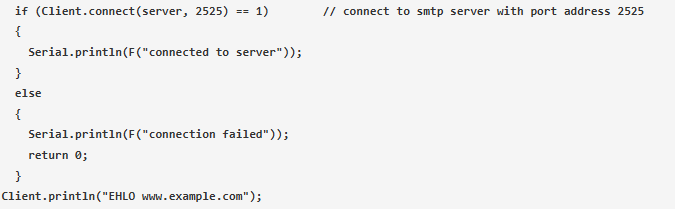 Client.connect()是使用SMTP Server和SMTP Port連接SMTP服務(wù)器的函數(shù)。如果連接建立成功并使用EHLO命令確認(rèn)服務(wù)器,則給出“1”。