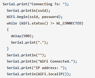 下面的代碼用于連接到Wi-Fi網(wǎng)絡(luò)并在串行監(jiān)視器上顯示狀態(tài)消息。