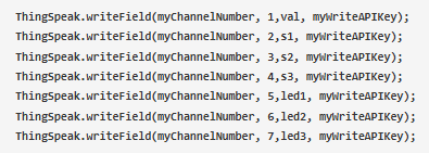 最后,使用函數(shù)ThingSpeak. writefield()將數(shù)據(jù)上傳到ThingSpeak云端。它需要通道號(hào),字段號(hào),數(shù)據(jù)(您想要在各自的字段中上傳)和編寫(xiě)API密鑰。在這里,我們將LDR傳感器數(shù)據(jù)、IR傳感器數(shù)據(jù)和led數(shù)據(jù)上傳到ThingSpeak云。