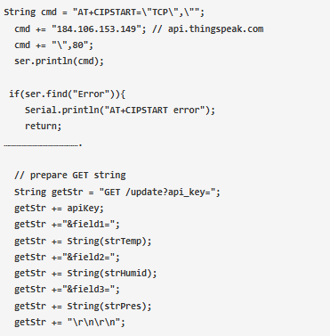 這些命令用于連接ThingSpeak服務(wù)器,然后打印不同字段的溫度、濕度和壓力值。