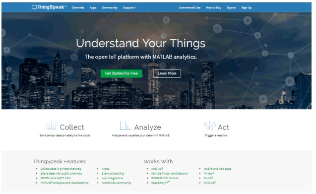 ThingSpeak是一個開放的數(shù)據(jù)平臺,它允許你在云中聚合、可視化和分析實時數(shù)據(jù)。你可以使用ThingSpeak控制你的設(shè)備,你可以從你的設(shè)備向ThingSpeak發(fā)送數(shù)據(jù),甚至你可以創(chuàng)建實時數(shù)據(jù)的即時可視化,并使用Twitter和Twilio等網(wǎng)絡(luò)服務(wù)發(fā)送警報。ThingSpeak集成了數(shù)值計算軟件MATLAB的支持。MATLAB允許ThingSpeak用戶編寫和執(zhí)行MATLAB代碼來執(zhí)行預(yù)處理,可視化和分析。ThingSpeak至少需要15秒來更新你的讀數(shù)。我們還用ThingSpeak做了其他有趣的項目,比如: