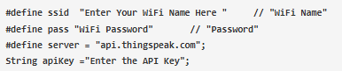 在此之后,輸入Wi-Fi名稱,Wi-Fi路由器的密碼,然后輸入從ThingSpeak頻道復(fù)制的API密鑰。