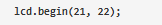 在setup Function中,通過(guò)定義用于I2C通信的SDA和DCL引腳來(lái)初始化I2C LCD模塊,(SDA = GPIO21, SCL = GPIO22)