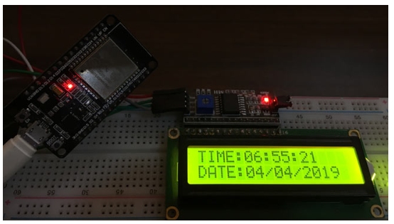 如果工作正常,你肯定會(huì)在16x2 I2C顯示器上獲得互聯(lián)網(wǎng)時(shí)間,硬件應(yīng)該是這樣的