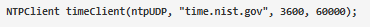 現(xiàn)在,在下面的代碼中,‘time.nist.gov’(默認(rèn)服務(wù)器)使用+1小時(shí)偏移量(3600秒)60秒(60000毫秒)更新間隔