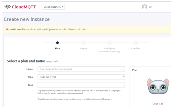 現(xiàn)在輸入您的實(shí)例名稱,并在計(jì)劃選項(xiàng)中選擇“Cute Cat”。