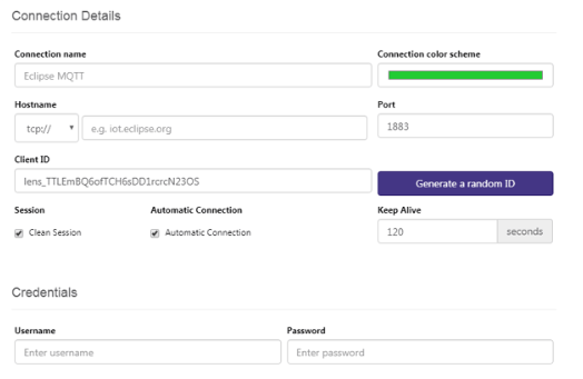 啟動(dòng)此應(yīng)用程序并設(shè)置與MQTT代理的連接。要設(shè)置連接,單擊“連接”,并在下一個(gè)窗口中輸入您的連接詳細(xì)信息從云MQTT帳戶。