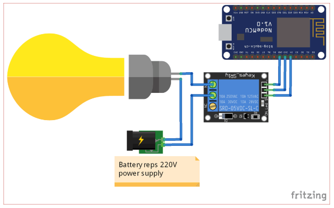 繼電器與NodeMCU引腳連接,用于控制家用電器。