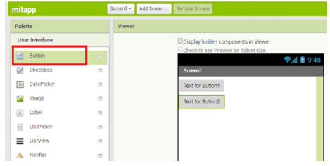 現(xiàn)在點擊“Button”,在主屏幕上拖放兩個按鈕。您可以在右側(cè)的選項按鈕上輸入您選擇的名稱。