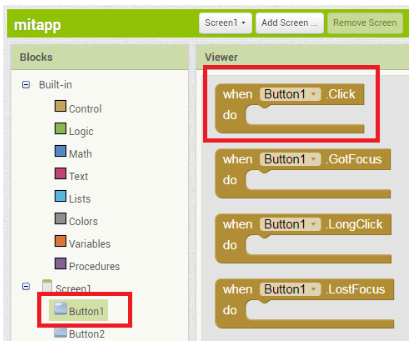 現(xiàn)在在blocks菜單中單擊button1,然后單擊標記的紅色選項。